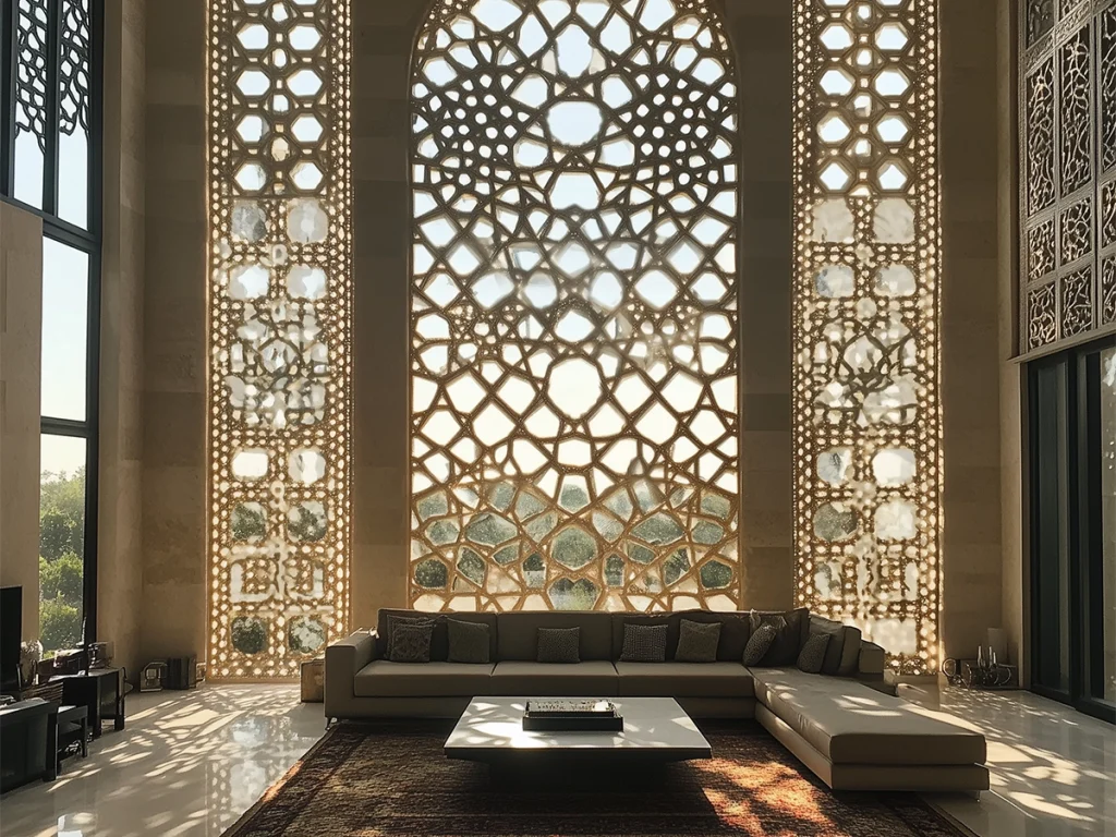 يترك الفن الإسلامي والهندسة المعمارية تأثيراً عميقاً على تصميم الأثاث في الإمارات. تُستلهم الأنماط الهندسية المعقدة والزخارف الأرابيسكية من المساجد والقصور، حيث يدمج المصممون هذه العناصر في أعمالهم. الأثاث الذي يحتوي على منحوتات معقدة وأقواس إسلامية وزخارف مثل النجمة الثمانية، يخلق انسجاماً وجواً من الاحترام في الفضاء الداخلي.